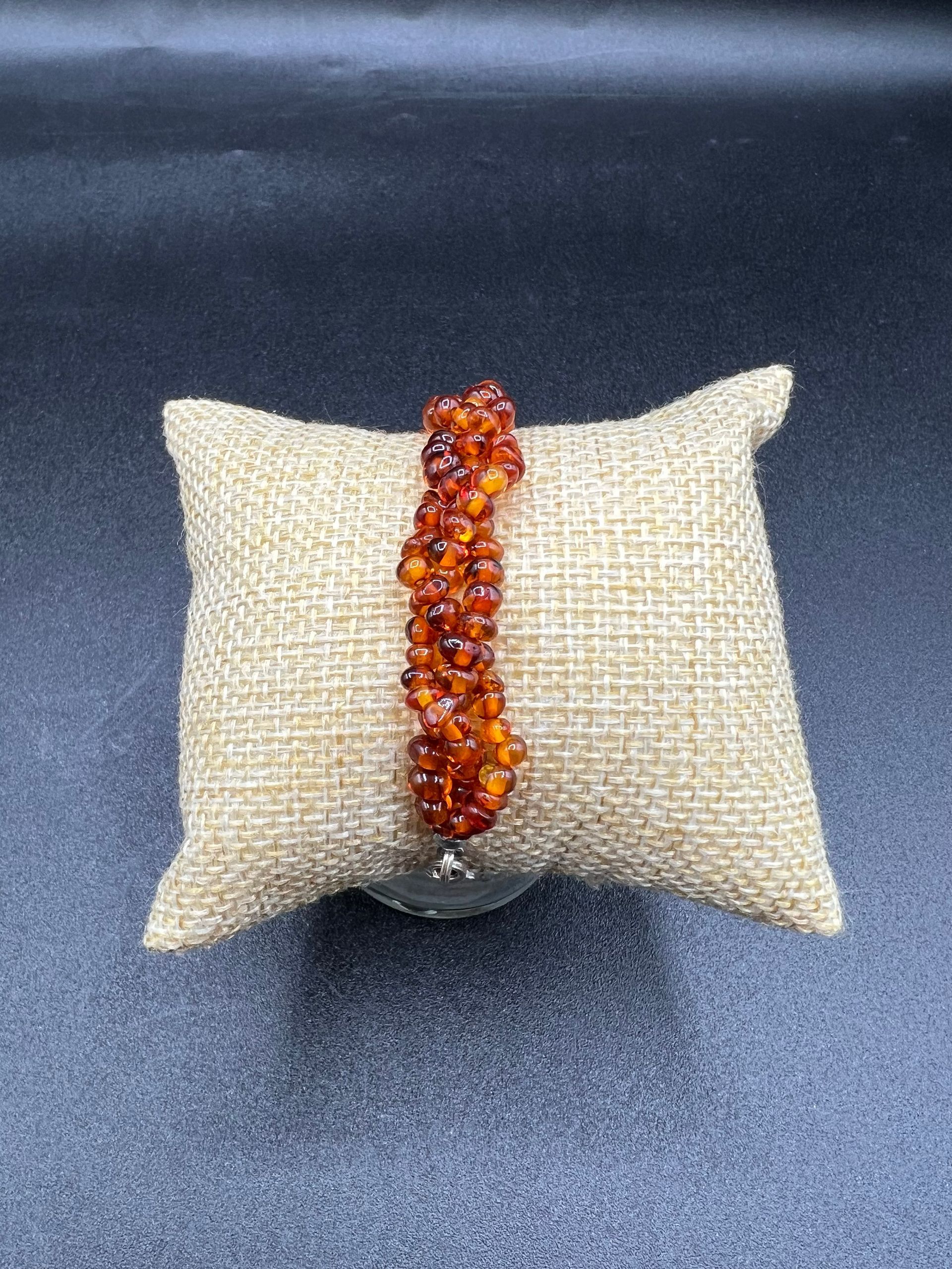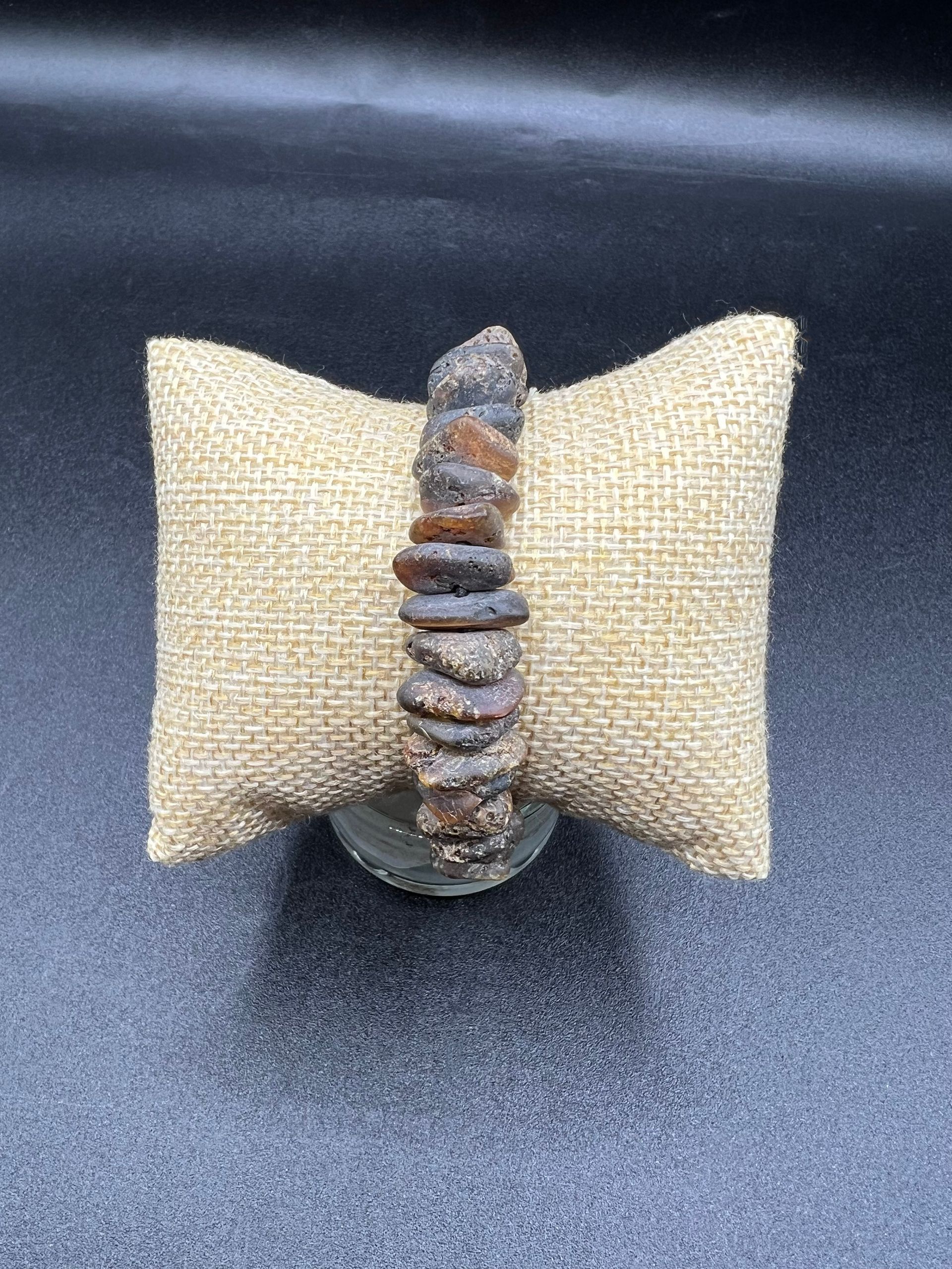 L'ambre est une résine fossilisée d'arbres préhistoriques qui s'est formée il y a des millions d'années. Cette gemme organique a été utilisée pendant des siècles dans la fabrication de bijoux et d'objets décoratifs en raison de ses belles propriétés et de sa couleur chaude et chatoyante.