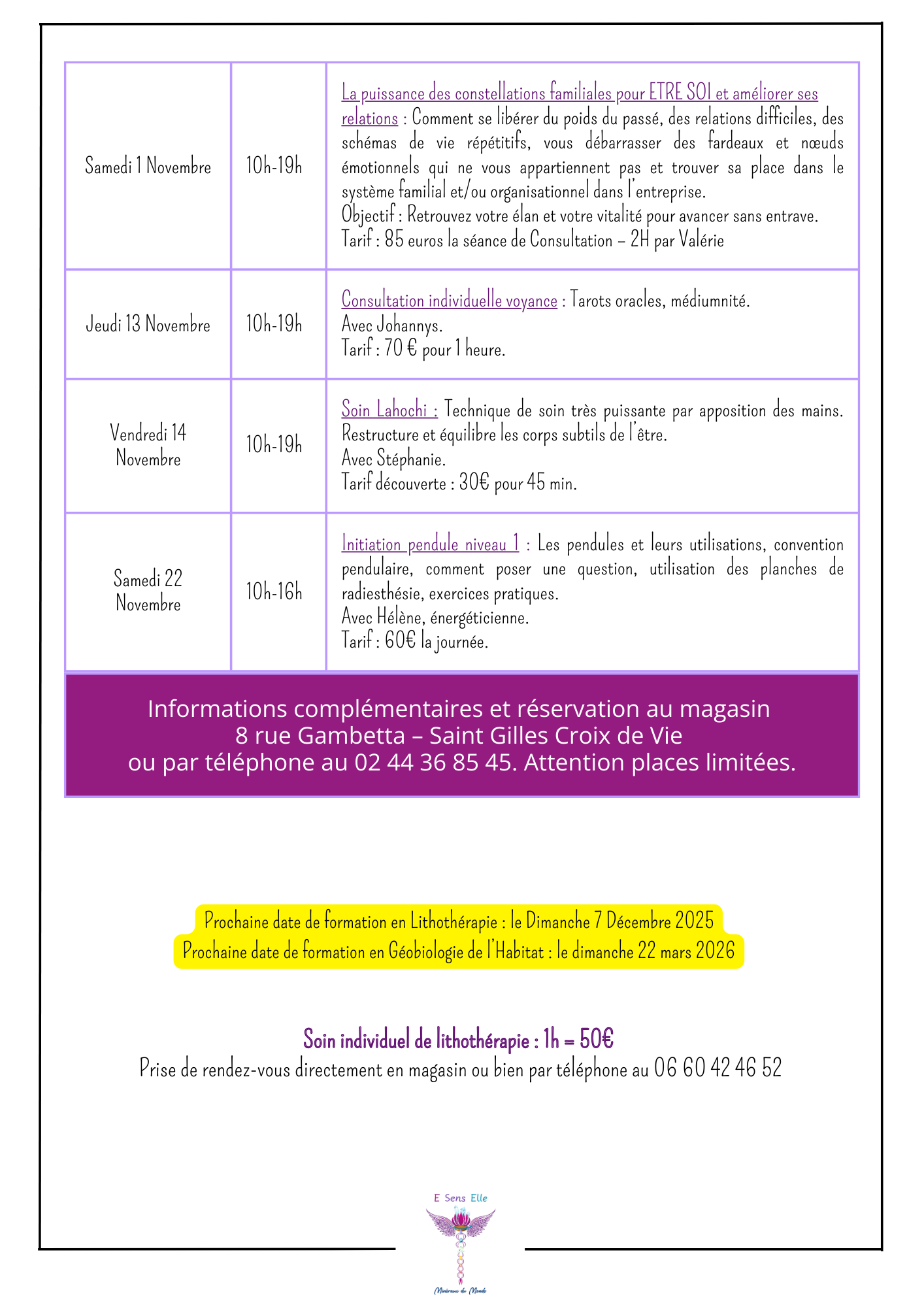 Découvrez les pierres classiques et les pierres rares de E = Sens Elle en Vendée